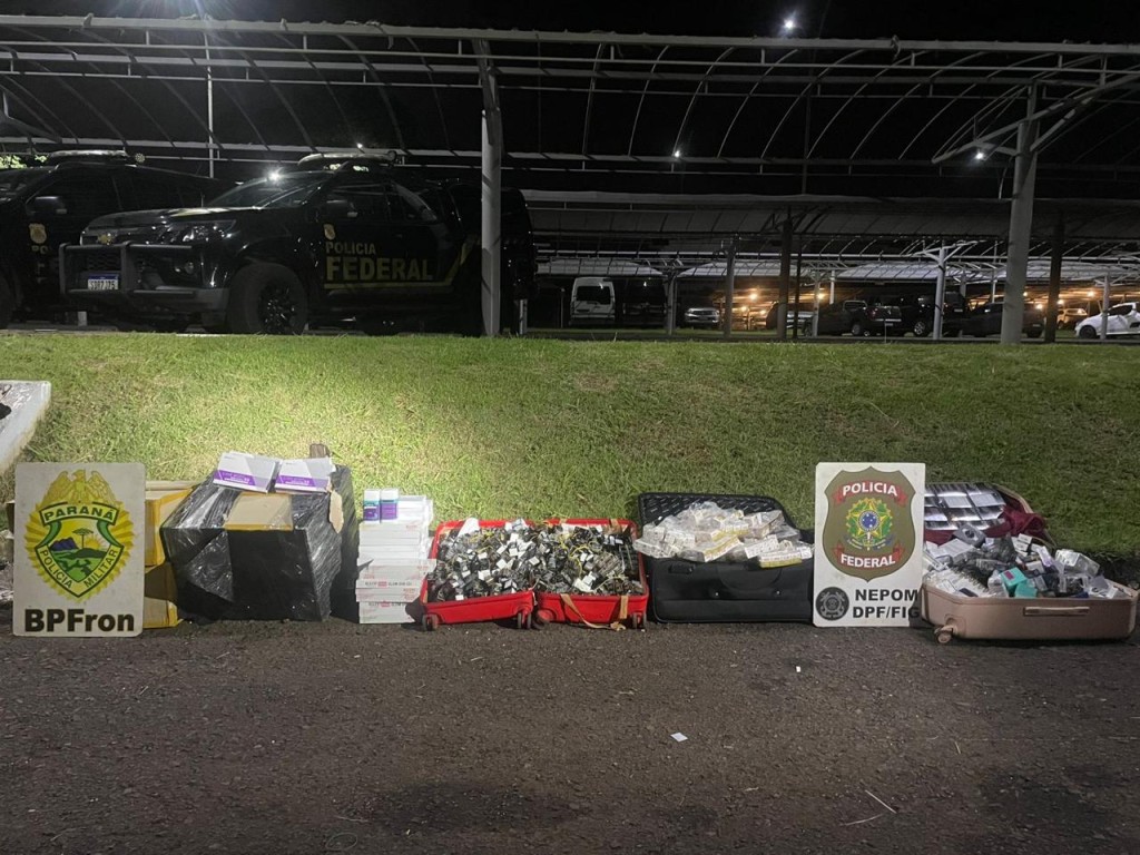 Foz do Iguaçu/PR. Nessa segunda-feira (13/04), uma ação conjunta entre a Polícia Federal e a Polícia Militar do Paraná resultou na prisão de dois homens e na apreensão de mercadorias de origem estrangeira na região de fronteira.